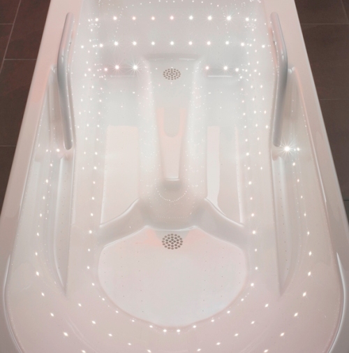 spektakularny efekt świetlny otrzymany przez 150 punktów świetlnych zintegrowanych z w niecką wanny